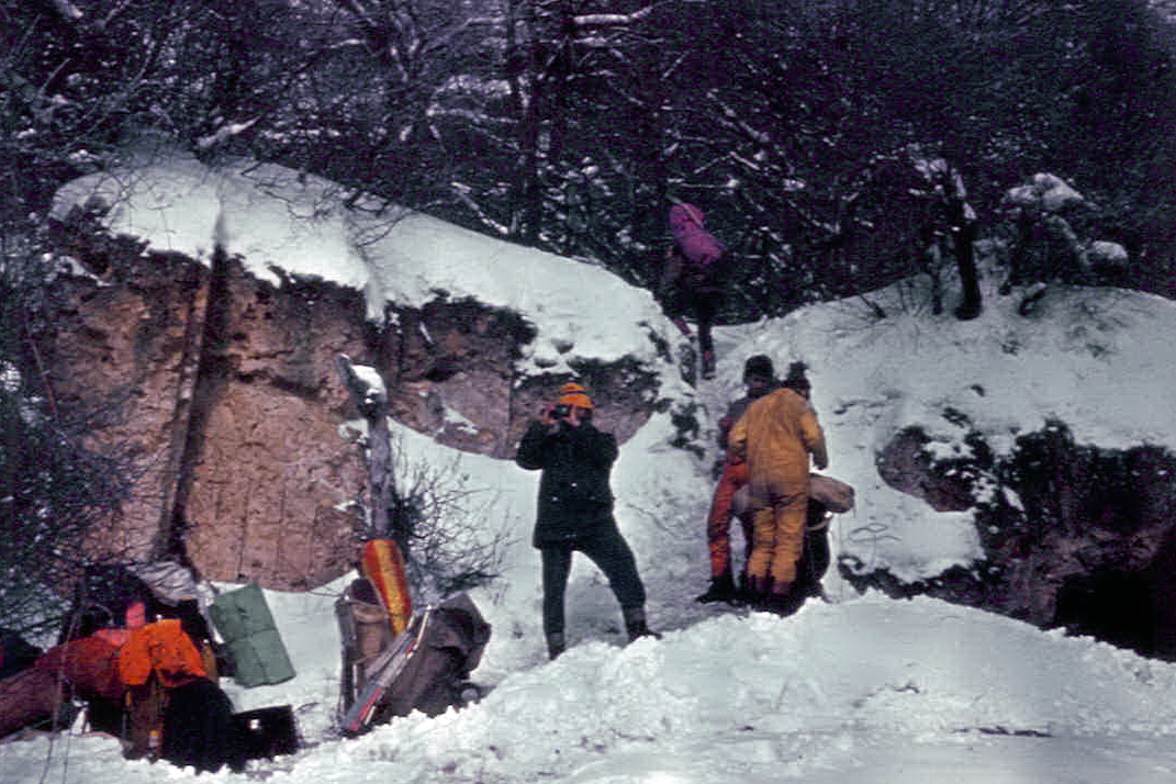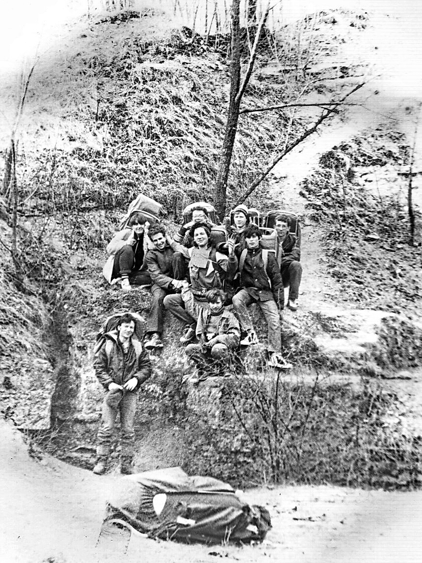 Весь 1986г идет интенсивная работа по дальнейшему прохождению Сюрпризной. Раскопки, раскопки… Пещера быстро растет, становится настоящей фабрикой по привлечения новых спелеологов. Кроме того, для клуба это бесценный спортивный спелеополигон — великолепно нарабатывается опыт прохождения распоров, экстремальных узостей и техника раскопок завалов. Где-то в этом году делается первая топосъемка открытой части. В этом же году в Сюрпризной организуется первый наш ПБЛ (Подземный Базовый Лагерь) — в целях тренировки и отработки технологии подземной жизни и заброски грузов через многочисленные узости. Одновременно впервые же организуется проводная телефонная связь с ПБЛом — отработка технологий, которые очень пригодились в следующем году в вертикальных пещерах на Арабике.
